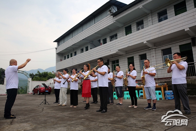 云陽網訊(記者 劉興敏)“我的老父親,一生牽掛的你,看著你長滿老繭的手,淌滿歲月的淚滴……”6月17日,云陽縣管樂協會的任德清在管樂的伴奏下,一句句深情地演唱,田園風光養護院老人謝方明流下了激動的淚水。