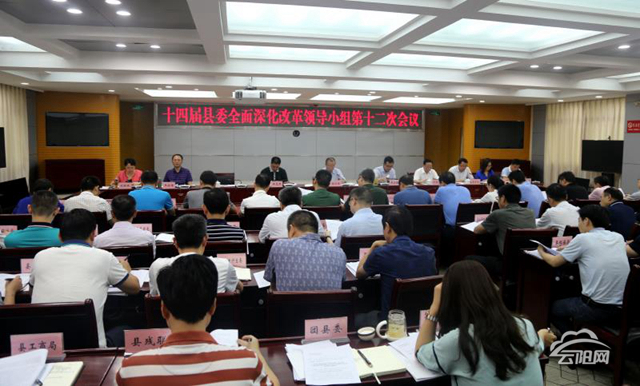 會議傳達學習了中央全面深化改革委員會第二次會議和五屆市委全面深化改革領導小組第七次會議精神;通報了5月10日十四屆縣委全面深化改革領導小組第十一次會議貫徹落實情況;審議并通過了《2018年縣級重點改革項目督察計劃》《關于全力攻堅突破一批重大改革項目的工作方案》《云陽縣貫徹實施黨的十九大報告重要改革舉措分工方案》;聽取了我縣鄉村振興體制機制改革匯報等。