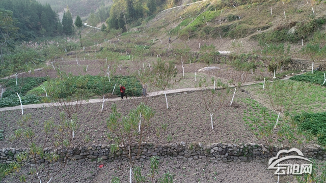 在泥溪鎮石缸村3、4、5組,有一條連綿數公里的深溝名為薛家溝,因為地勢陡峭,路面崎嶇加之土地貧瘠,村民們只能在稍平坦點的地方種些紅薯、土豆,因此,薛家溝有了一個別稱——“窮溝溝”。可令人意想不到的是,這個“窮溝溝”兩年前栽滿了棗樹和桃樹,一株株樹苗經過精心管護后,如今已經長成了一棵棵枝椏分明的小樹,整整齊齊地排列著,令這片土地充滿了希望的喜悅。