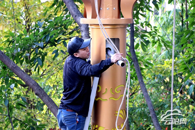 工人正在安裝燈飾