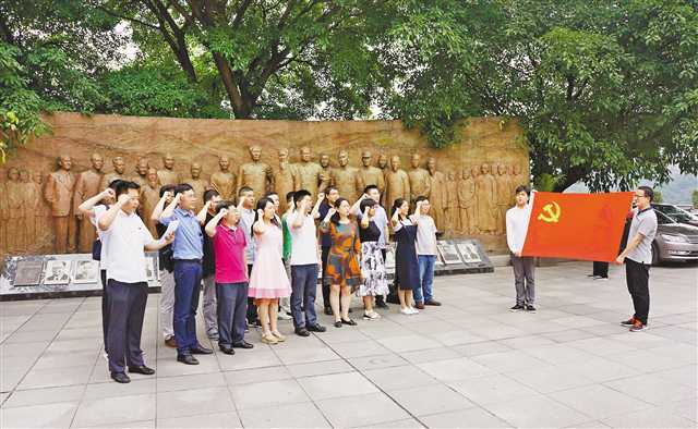渝中區(qū)委組織部干部職工在紅巖村重溫入黨誓詞。(渝中區(qū)委組織部供圖)