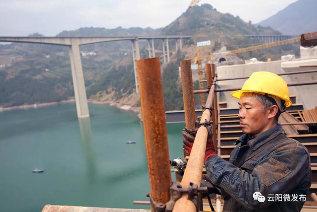 澎溪河多線特大橋全長741.6m,共14跨,墩高55m,屬于全線控制性工程。在黃石澎溪河多線特大橋施工現場,工人正在吊裝水下鋼柱,清理圍堰,準備灌注鋼筋混凝土,完成水下部分樁基。目前,已完成25根樁基鉆孔灌注樁施工,現場施工有序展開。