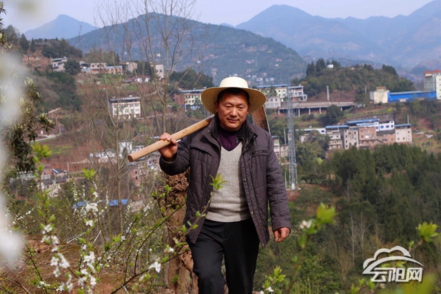站在果園邊一眼望去,蜿蜒的公路旁,一棵棵矮小卻精壯的李子樹整齊地排列在山坡上,樹上的枝丫上掛著一束束潔白的花朵,陽光灑下,滿坡的李子花倒映在江面上,婉若畫家筆下的一幅的美景畫。