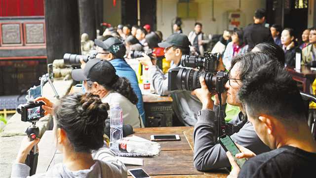 四月十五日,網絡達人們在湖廣會館采風。通訊員 陳沾弟 攝