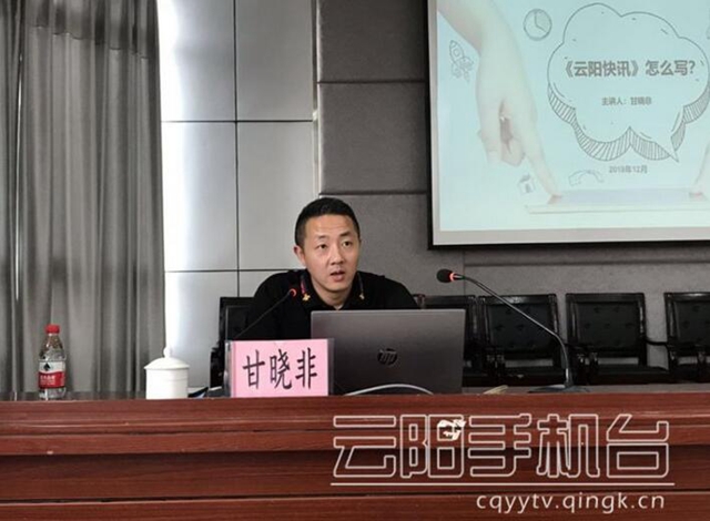 培訓會上,云陽報社編輯李旭忠、縣廣播電視臺新聞中心主任甘曉非分別就新聞消息寫作、人物通訊寫作、云陽快訊編寫,結(jié)合案例從理論到實際作了深入淺出地講解。