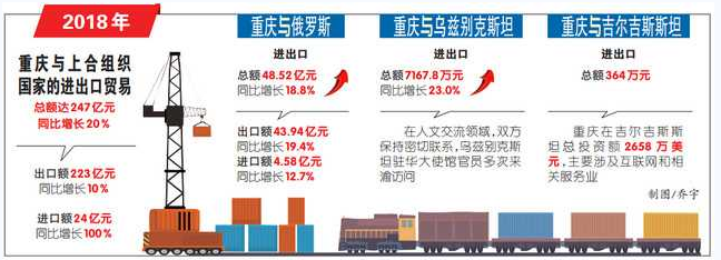 記者從市政府外辦了解到,去年以來,重慶與上合組織高層互訪密切,雙方合作不斷加深。在經貿方面,去年重慶與上合組織國家的進出口貿易總額達到約247億元、同比增長20%,其中出口額223億元、同比增長10%,進口額24億元、同比增長100%。
