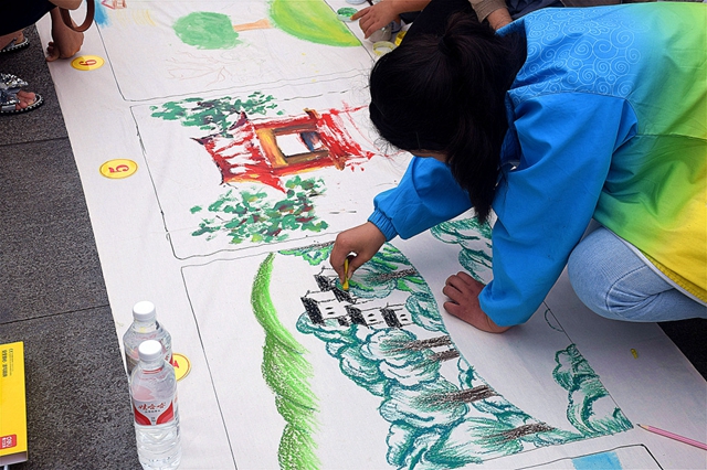 本次比賽分為手抄報和百米畫卷繪畫兩個板塊,分為小學組和中學組兩個級別。其中手抄報比賽獎項在活動之前已經評選完畢,賽事組在活動中給獲得一等獎的人員進行頒獎。沙市小學的李嘉欣等人獲得小學組手抄報一等獎,云陽中學的吳珊等人獲得中學組手抄報一等獎。隨后,近100名學生以“我為祖國植10棵樹”為主題,在百米長卷上舞動畫筆,大膽構思、自由創作,通過油畫棒畫、水墨畫、水粉畫等多種藝術形式,用繽紛的色彩和優美的線條創作出一幅幅充滿童趣的繪畫作品。他們或細筆勾勒,或濃墨豪刷,或低頭沉思,或靈感迸發,一筆一畫都透露著稚嫩和童趣,絢麗的色彩、新奇的搭配和爛漫的想象讓現場觀眾忍不住點贊。