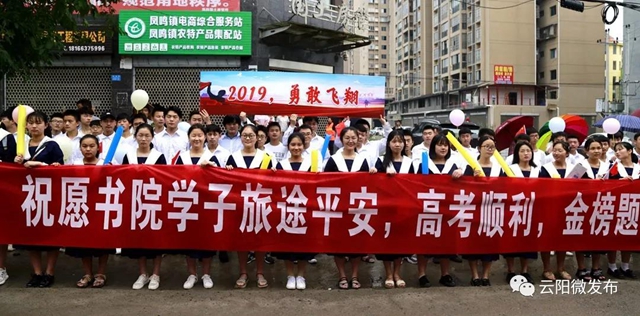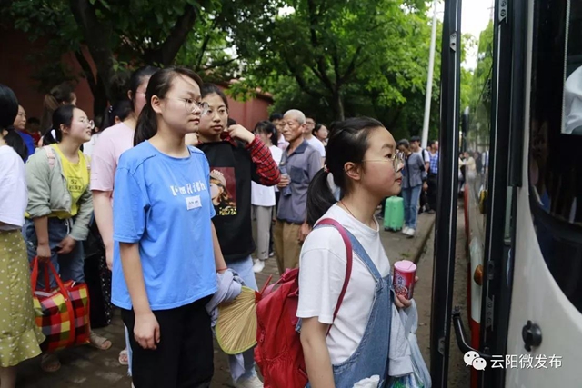 早上6點(diǎn)30分左右,交巡警紛紛到達(dá)了鳳鳴、紅獅等鄉(xiāng)鎮(zhèn)學(xué)校,此時(shí),接送考生們的車隊(duì)已準(zhǔn)備就緒。雖然天下著大雨,但學(xué)生們依然精神抖擻,在民警的指揮和引導(dǎo)下,井然有序地排隊(duì)出校門、上車。有不少考生家長前來送行,給孩子一個(gè)加油的擁抱;還有不少高一、高二的學(xué)弟學(xué)妹們?yōu)榧磳⒉饺肟紙?chǎng)的師哥師姐吶喊助威,一聲比一聲高的“高考,必勝”響徹在雨中。