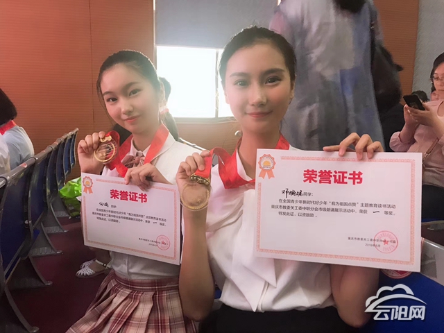 云陽網(wǎng)訊(通訊員 張小林)6月13日,由重慶市教委關工委中職分會主辦的重慶市“新時代好少年”主題教育讀書活動“我為祖國點贊”朗誦展示在四川儀表工業(yè)學校舉行,云陽職教中心學生鄧婉妮、向渝在比賽中發(fā)揮出色,表現(xiàn)精彩,雙雙榮獲一等獎。