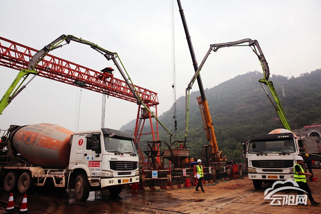 鄭萬高鐵澎溪河多線特大橋深水承臺澆筑成功
