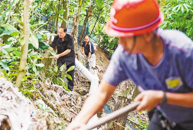 7月29日,九龍坡區(qū)石板鎮(zhèn)馬家溝水庫(kù)附近,工人正在整治污水管網(wǎng)旁的邊坡。首席記者 謝智強(qiáng) 實(shí)習(xí)生 顏梁 攝