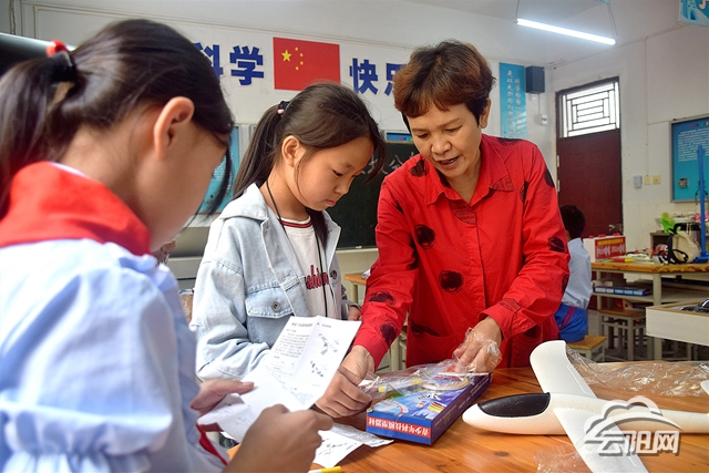 由于熱愛科技,于立新在盤石小學的科技輔導員崗位上一干就是9年,盡管今年已經52歲,但是一說起科技,她仍舊充滿熱情和干勁。走進盤石小學的科學教室,記者被各種模型的創意設計吸引了眼球。于立新說,這些都是孩子們發揮想象力,自己動手完成的。