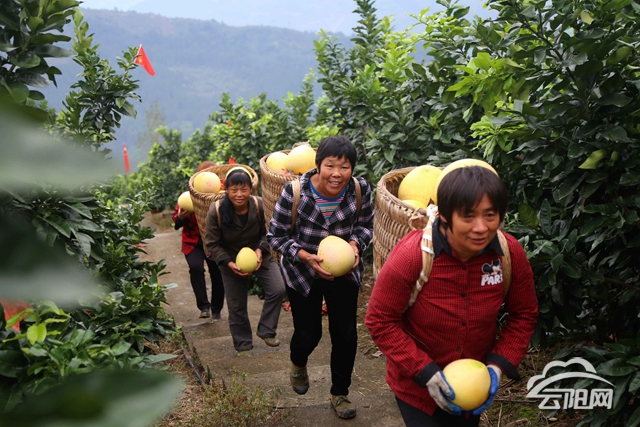 云陽(yáng)網(wǎng)訊(記者 丁齊 劉雪梅)秋天是收獲的季節(jié),云安鎮(zhèn)毛壩村的三紅蜜柚基地正在在進(jìn)行采摘,67公頃蜜柚清香撲鼻,一派豐收景象。