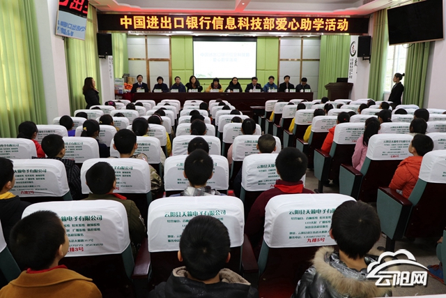 捐贈儀式上,李正毅代表中國進出口銀行向沙市小學捐贈便攜式計算機和圖書文體用品等。她表示,捐贈電腦、圖書是教育扶貧的一項重要舉措,中國進出口銀行作為云陽的定點幫扶單位,一直都把對口幫扶工作作為重要的責任和使命,今后也將一如既往地關注云陽,幫扶云陽,希望孩子們要珍惜來之不易的學習機會,不斷用知識充實自己,在以后的人生道路中走得更好,走得更遠,為家鄉的發展作出貢獻。