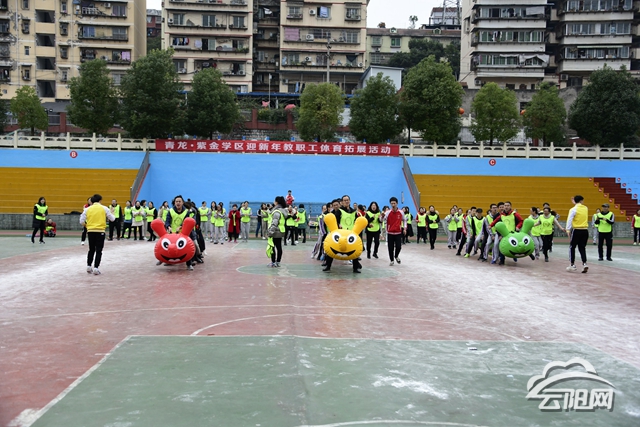 云陽網訊(通訊員 丁淑念)12月29日,青龍紫金學區迎新年教職工體育拓展活動在青龍小學操場舉行。青龍小學、紫金小學共200余名教師參與活動。