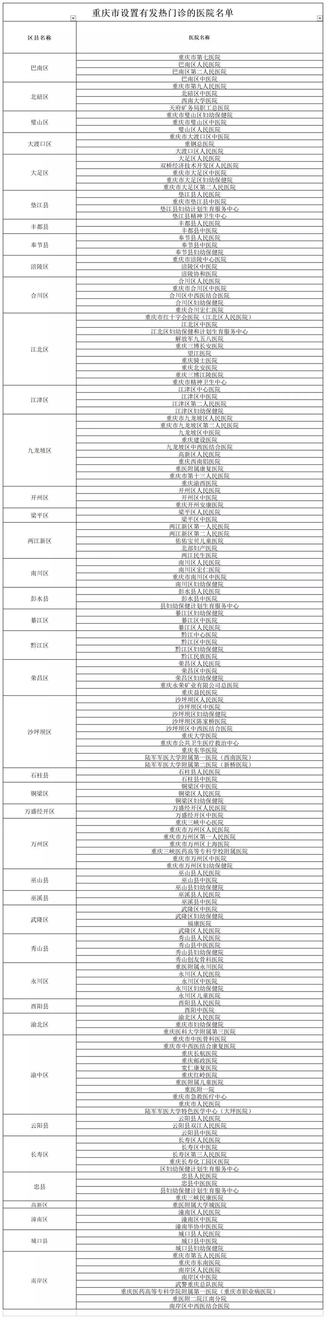 現將我市設置發熱門診的醫院名單予以公布。各區縣衛生健康行政部門可根據疫情防控需要予以調整,并在官網上公布。
