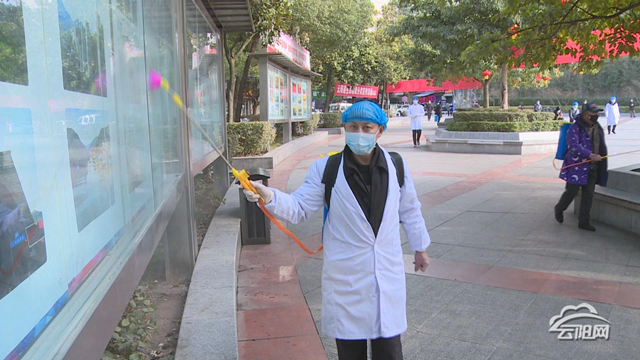 在黃金包社區,縣疾控中心工作人員對社區工作人員進行了消毒工作的專業培訓,詳細講解了消毒器械的使用方式、消毒過程中的注意事項等知識,并現場指導社區工作人員對社區內公共場所噴灑消毒液。隨后,相關人員組成消毒工作隊,前往群益廣場、云陽汽車客運中心等公共場所,對平時人流量較多的重點區域進行了仔細消毒。