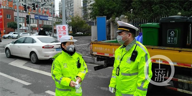“我們是戰疫一線的一家‘三口’!”申鄧笑著,他是重慶高速公路第一支隊一大隊執法人員,妻子王麗珍系五支隊執法人員,而妻子的腹中,孕育著他們三個多月(孕期)的孩子。