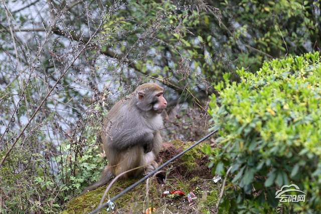 云陽網訊(記者 李充)3月6日,在縣城木魚包公園一處臨江山崖上,一只“美猴王”正在悠閑自得地享用市民提供的“免費午餐”。