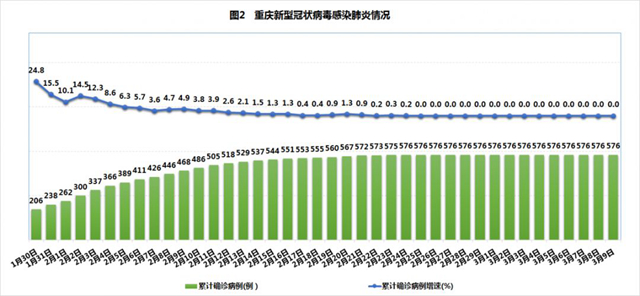 楊榮剛介紹,3月9日0—24時,重慶無新冠肺炎新增確診病例報告,新增治愈出院病例15例。截至3月9日,現有在院確診病例28例(其中重型病例1例),累計死亡病例6例,累計治愈病例542例,累計報告確診病例576例。累計排除3528例疑似病例,尚有4例正在排查中。