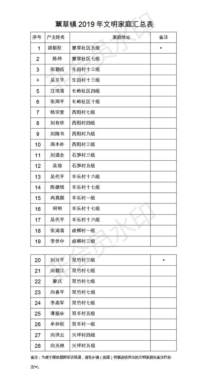 附件:2019年度縣級(jí)文明家庭名單