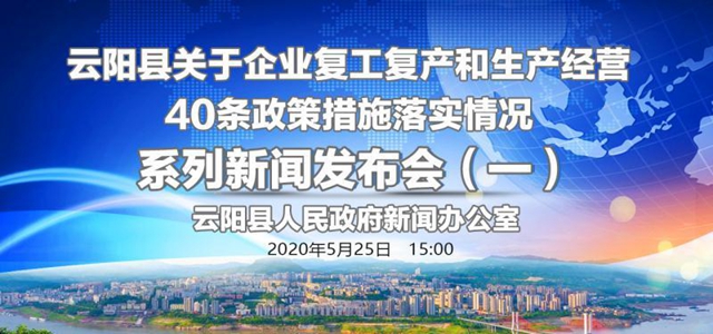 云陽(yáng)網(wǎng)訊 5月25日(星期一)下午3:00,云陽(yáng)縣人民政府新聞辦公室將舉行云陽(yáng)縣關(guān)于企業(yè)復(fù)工復(fù)產(chǎn)和生產(chǎn)經(jīng)營(yíng)40條政策措施落實(shí)情況系列新聞發(fā)布會(huì)第一場(chǎng)。進(jìn)一步解讀在疫情期間階段性降低企業(yè)用電、用水、用氣成本的政策措施,通報(bào)目前我縣落實(shí)情況和下一步工作打算。邀請(qǐng)縣發(fā)展改革委副主任彭武、縣城市管理局副局長(zhǎng)羅倫、國(guó)網(wǎng)重慶云陽(yáng)供電分公司副總經(jīng)理傅軍、縣天然氣公司副總經(jīng)理曾蓉介紹相關(guān)情況,并回答記者提問(wèn)。屆時(shí),云陽(yáng)縣融媒體中心將通過(guò)智慧云陽(yáng)APP、云陽(yáng)網(wǎng)和云陽(yáng)手機(jī)臺(tái)等全媒體平臺(tái)進(jìn)行視頻、圖文直播。