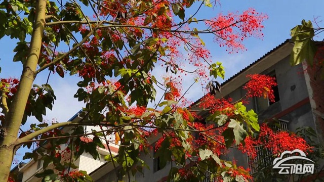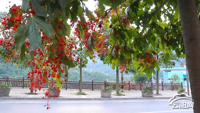 火焰木樹(shù)形十分優(yōu)美,花深紅色,量大而艷麗,適合庭院和公園種植,也可作沿路生態(tài)景觀建設(shè)。龍角鎮(zhèn)結(jié)合云利路景觀建設(shè),在場(chǎng)鎮(zhèn)路段栽植有100多棵火焰木,目前開(kāi)花期還可持續(xù)約一個(gè)月。
