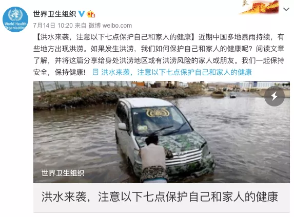 近期,南方汛情牽動人心,形勢嚴峻。世衛組織官微發出提醒,洪澇可能會增加水和病媒傳播疾病的傳播,例如傷寒、霍亂、瘧疾和黃熱病,并就怎樣保護自己和家人的健康給出7點提示。