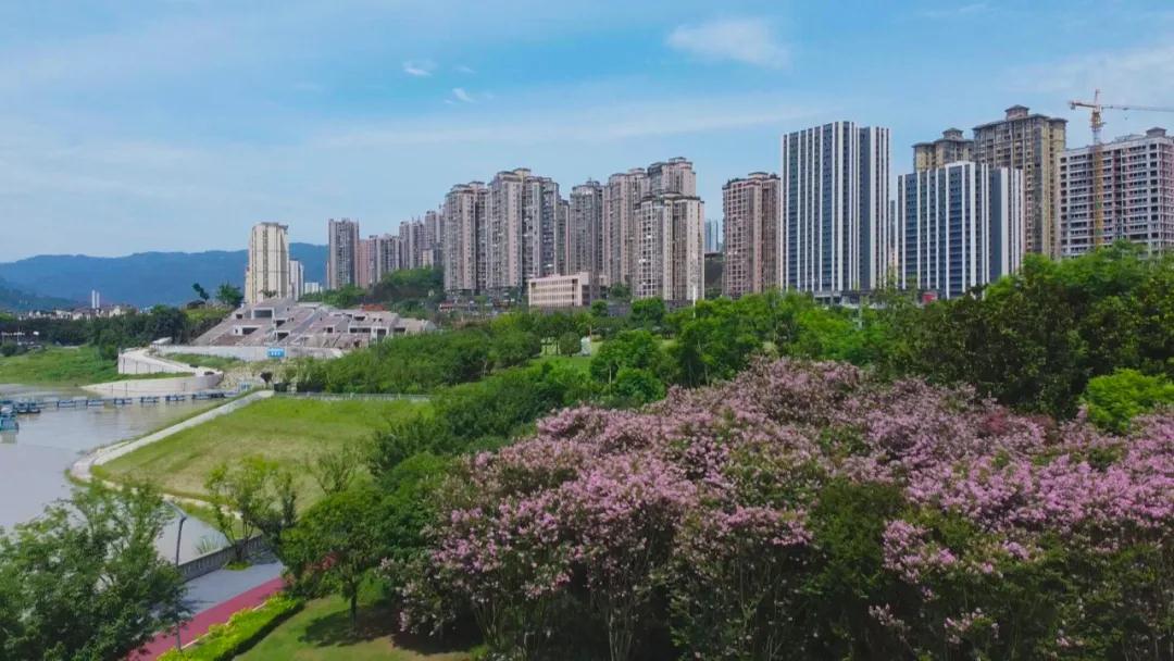 云陽月光草坪:江畔紫薇開 盛夏占芳菲