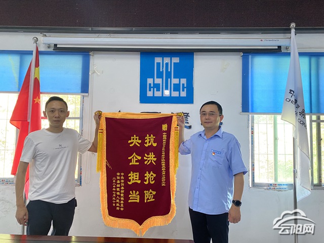 云陽網訊(通訊員 孔立梅)8月6日,鄭萬鐵路重慶段土建七標四工區收到來自棲霞鎮贈送的錦旗。棲霞鎮此舉是為感謝四工區在上月對棲霞鎮抗洪搶險的莫大幫助。
