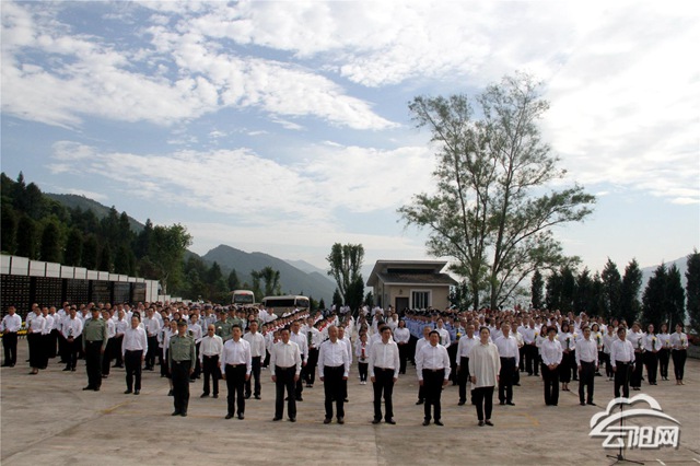 烈士陵園內,松柏長青,氣氛肅穆。革命烈士紀念碑巍然聳立,正中央“人民英雄永垂不朽”八個大字,熠熠生輝。紀念碑前,600多名社會各界代表手持鮮花,列隊肅立。隊列之前,以中共云陽縣委、縣人大常委會、縣人民政府、縣政協,駐云各部隊,各民主黨派、工商聯和無黨派人士,各人民團體和各界群眾,軍烈屬和老戰士,全縣少先隊員名義敬獻的9個大型花籃一字排開,寄托著社會各界對英烈的深切緬懷。