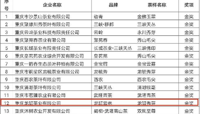 經過審評,最終評選出重慶市第十三屆“三峽杯”名優茶金獎23個,其中綠茶金獎14個、銀獎21個,紅茶金獎9個、銀獎11個,大宗茶特等獎2個,一等獎1個,創新產品獎2個,“十大名茶”產品10個,“十大名茶”提名產品5個。