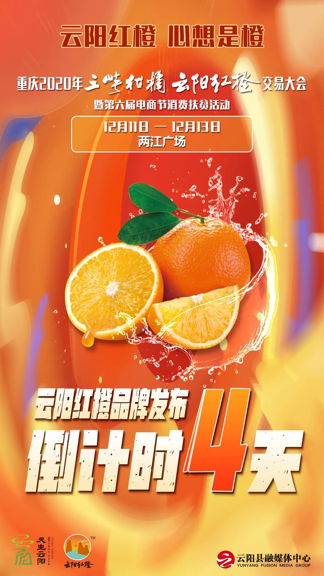 離12月11日即將舉辦的“重慶市2020年三峽柑橘·云陽紅橙交易大會(huì)暨第六屆電商節(jié)消費(fèi)扶貧活動(dòng)”只有4天了,這個(gè)周末我們不僅僅可以吃柑橘,還有很多精彩活動(dòng)等著大家呢!