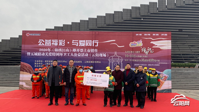 云陽網訊(記者 張詩怡 瞿利文)2020年12月31日,我縣舉行2020年《錦繡江山》即開票上市銷售暨五城聯動關愛特困環衛工人公益活動。