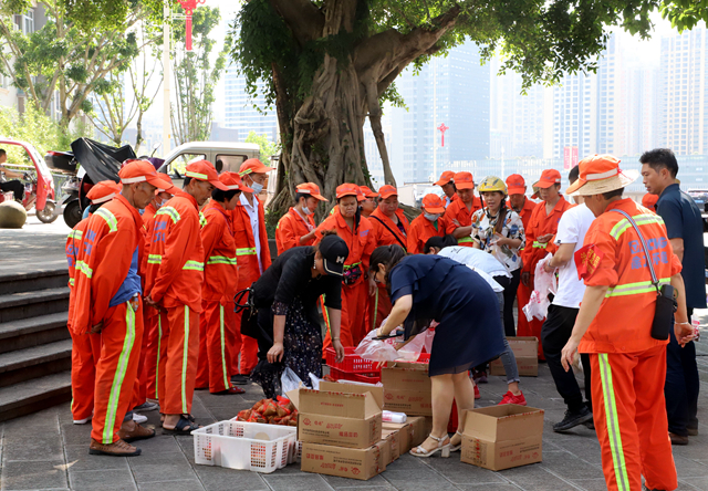 濃濃粽香,個個真情?;顒蝇F場,各位負責人向環衛工人派發了“愛心粽子”。環衛工人紛紛表示,感謝集團對他們的照顧,讓他們在端午來臨的時候吃上新鮮的粽子,以后會更加認真工作,來回報政府及公司對他們的關愛。