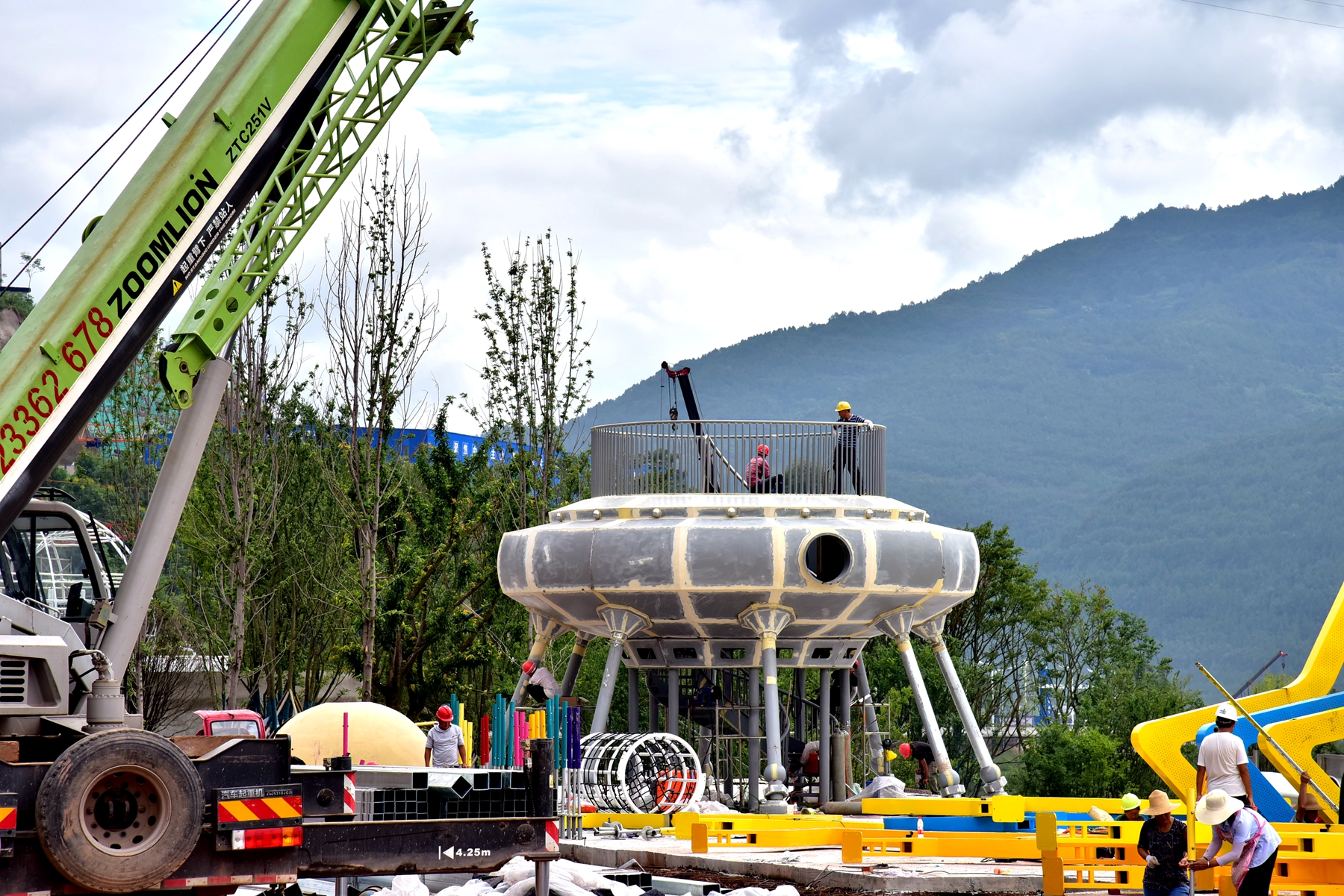 自今年1月份開工建設以來,彩云陽光兒童游樂園項目嚴格按照工期表,高質高效推進建設進度。目前該游樂園土建主體已經完工,正在進行路面鋪裝和綠化,以及建筑物的外裝飾;各項游樂設備的主骨架即將安裝完畢,下一步將進行設備投入使用前的安全檢查和調試工作,9月28日將建成開放。
