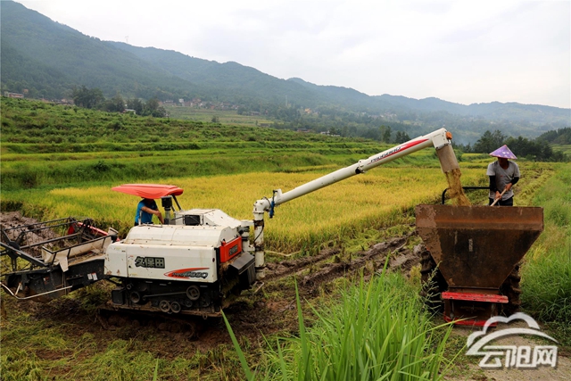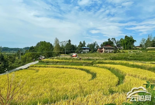 金秋十月稻飄香,稻花香里說豐年。在南溪鎮天河村昌隆農業基地,沉甸甸、金燦燦的稻子壓彎了稻穗,微風吹過,金黃的麥浪隨風起舞。陳昌民駕駛著水稻收割機在稻田里來回穿梭,收割、脫粒、卸倉、裝車、運輸,忙碌的豐收景象讓人沉醉。
