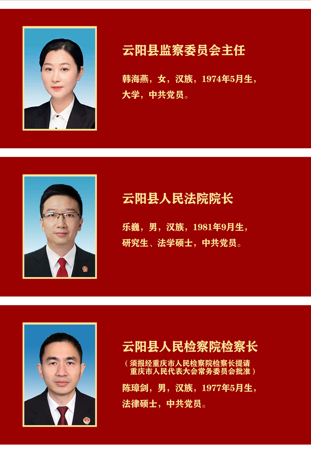 云陽縣監委會主任、法院院長、檢察院檢察長簡介