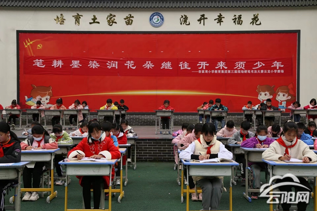 當(dāng)天,杏家灣小學(xué)教育集團(tuán)的杏家灣小學(xué)、清水民族小學(xué)、清水云龍小學(xué)、蔈草小學(xué)、歧陽小學(xué)、水口小學(xué)6所學(xué)校3000多名學(xué)生分別在各個(gè)比賽場地開展比賽。各個(gè)學(xué)校賽場上,同學(xué)們書寫姿勢端正,聚精會神,書寫規(guī)范美觀。一邊是筆墨飄香潤心靈,一邊是橫豎撇捺涵素養(yǎng),從流動的筆尖下,每一個(gè)漢字仿佛都幻化成孩子們喜愛的靈動小精靈,在他們紛呈的世界里,漢字或坐、或起、或飛、或躍、或奔、或舞。不一而足,但精彩絕倫。