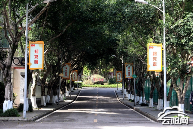 四月,春暖花開,萬物復蘇。云陽縣天景初級中學入口處的文化走廊,漫長且綠意幽深。兩行茂密的行道樹下,社會主義核心價值觀宣傳標語整齊相對,“靜下來”等10個五顏六色的小標語懸掛其間,微風拂過輕飄揚,為校園更添了一抹亮色和靈動。