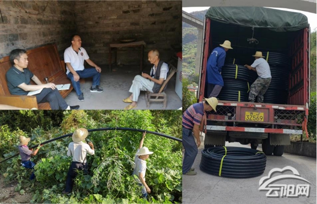 9:27朝陽村:鎮黨委主要負責人、村領導、駐村干部等正深入農戶實地了解用水保障情況,了解群眾生產生活用水的現狀、需求、困難。村委根據轄區內旱情、水源地實際情況,購買管道5000余米,同時發動群眾開展生產自救,利用水泵等設施臨時為農作物供水。
