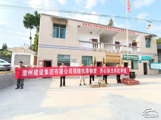 云陽網訊(通訊員 任靜)8月24日上午,渠馬鎮本地企業渝州建設集團有限公司滿載著礦泉水、藿香正氣液、風油精等抗旱物資的愛心車隊駛進渠馬鎮柴林村,向高溫天氣的受災群眾表示慰問,為抗旱提供了一定的物資保障,以實際行動為抗旱奉獻力量。