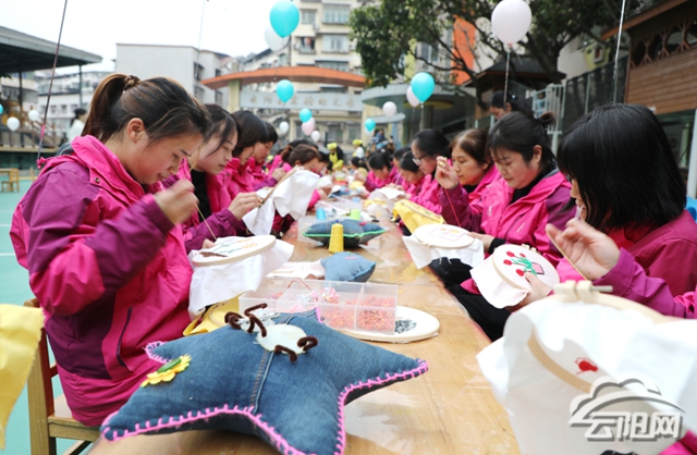 當(dāng)天,幼兒園全體教職工在操場上舉行了“巾幗魅力 向美而生”的傳統(tǒng)制作競賽活動。活動在集體舞中拉開帷幕,幼兒園相關(guān)負(fù)責(zé)人對全體女教師們的辛勤付出和突出貢獻(xiàn)予以充分的肯定,并送上節(jié)日的祝福。在“巧手繪制”環(huán)節(jié)中,老師們分為大班組、中班組、小班組、保育組、后勤組、行政組六個小組進(jìn)行干花團(tuán)扇、扎染、剪紙、刺繡、糖畫、書畫、傳統(tǒng)制作;在“炫美傳情”環(huán)節(jié)中,各組老師現(xiàn)場展示制作作品,并將作品呈現(xiàn)在幼兒園展廳全園師幼共賞。