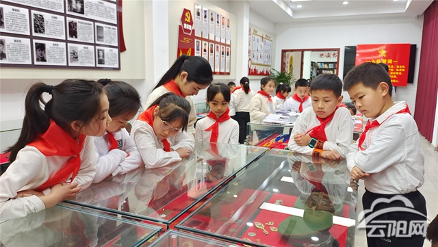 當(dāng)天,在云陽縣退役軍人事務(wù)局一樓國防教育展廳,20名統(tǒng)一著裝的小學(xué)生熱情高漲、全神貫注,在工作人員的帶領(lǐng)下逐項開展活動。往事越千年,今朝近百載。隨著氣勢恢宏的背景音樂響起,大家神情肅穆,開始了對云陽縣歷史沿革的朗誦,一幅幅云陽兒女為建設(shè)新中國拋頭顱、灑熱血的畫面在腦海中不斷浮現(xiàn)。