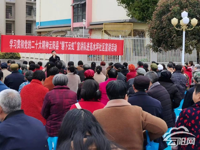 云陽網訊(記者 丁鑫)3月28日,云陽縣“磐下雲虹”宣講隊走進青龍街道亮水坪社區開展學習貫徹黨的二十大精神宣講活動。