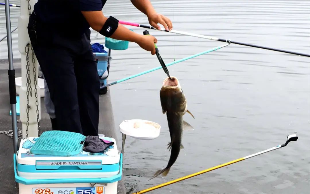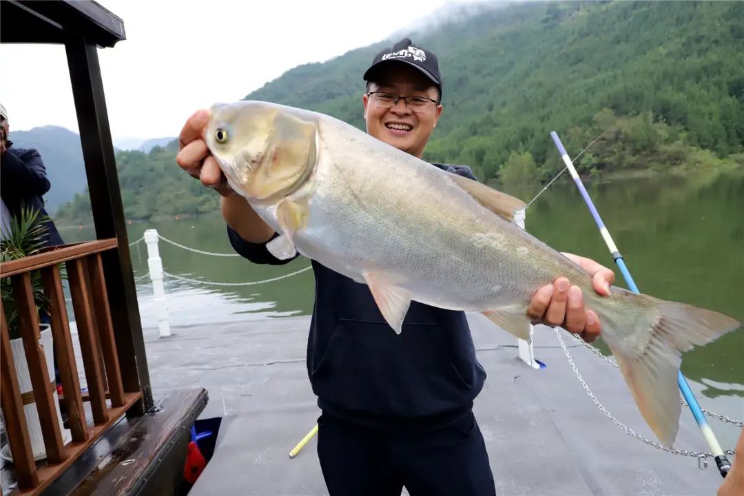“上魚了!這條魚有點廢桿,肯定是條大魚!”來自四川的參賽選手陳杰正在與一條十來斤的白鰱“作斗爭”,憑借豐富的經驗把魚打撈上岸后,他的臉上布滿了笑容。