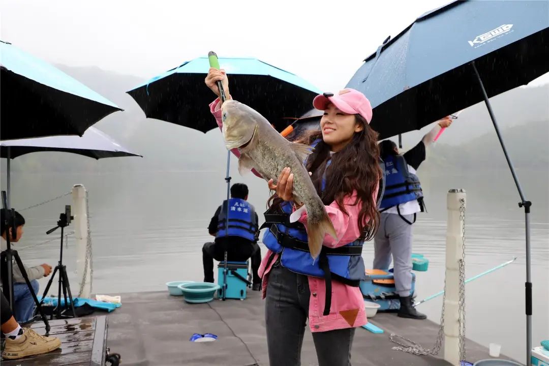 女主播楊莉莉就成功釣上了一條6斤重的大魚