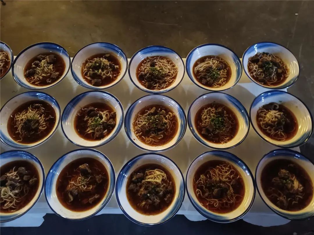 一碗碗熱氣騰騰的小面被送到現場游客手中