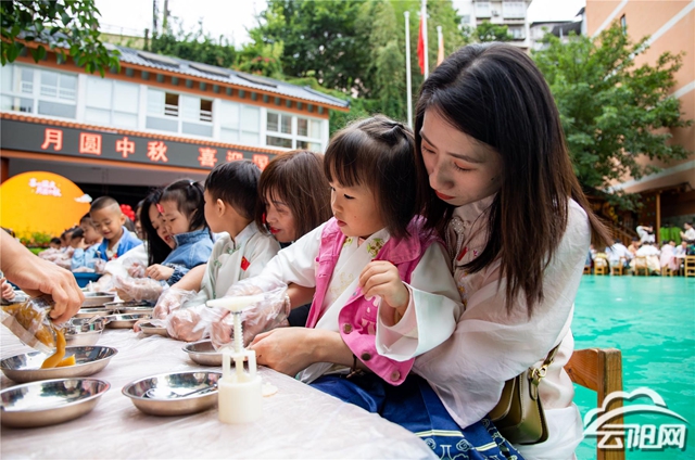 餅兒圓與月兒如,更兆嘉祥食有余。月餅圓如中秋之月,月餅也承載著人們對于吉祥如意、生活富足的美好愿望。在云陽縣實驗幼兒園,揉面、滾圓、包餡、壓模……小朋友們在家長的陪同下,體驗手工制作月餅,學(xué)習(xí)傳統(tǒng)習(xí)俗知識,鍛煉動手能力,感受傳統(tǒng)文化魅力,歡度中秋佳節(jié)。