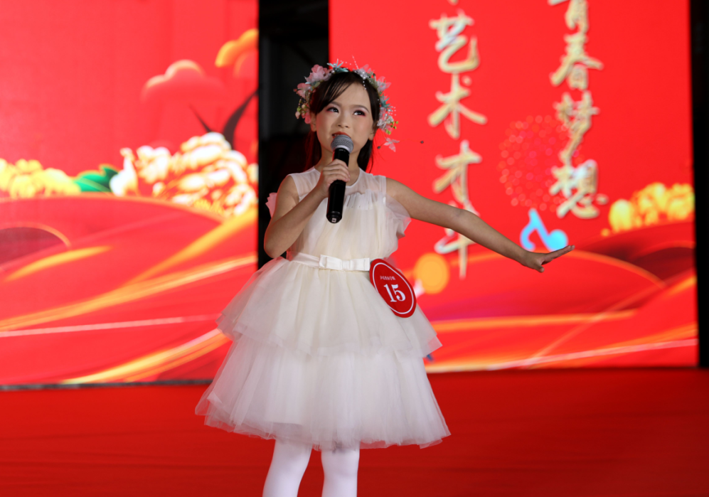 參賽選手程詩雯說:“今年我六歲了,我在比賽中唱了歌曲《竹搖窩》,能夠在舞臺上進行表演,我非常開心。”